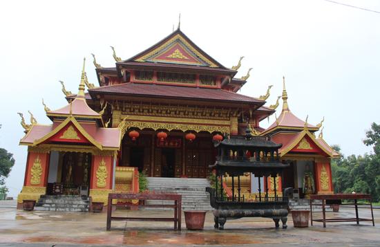 孟定洞景佛寺位于臨滄市耿馬縣國(guó)家級(jí)口岸孟定鎮(zhèn)的洞景寨,是國(guó)家及文物保護(hù)單位。孟定洞景佛寺的建筑結(jié)構(gòu)及陳設(shè)屬南傳上座部佛教山林派,因埋藏釋迦牟尼“舍利子”而聞名東南亞。大殿內(nèi)有釋迦牟尼金色大佛一尊集彌勒睡佛22尊,神采各異。